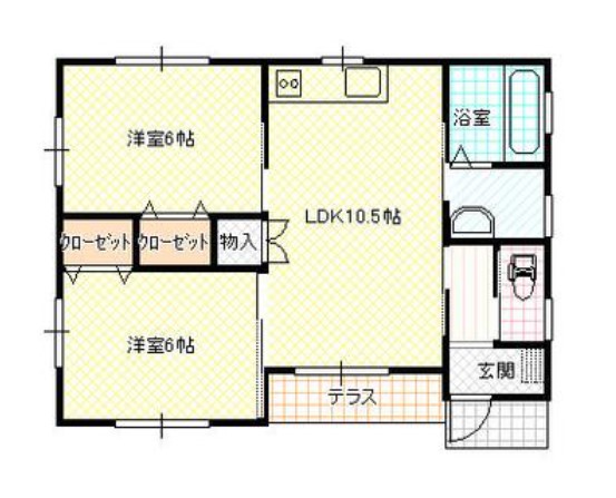 | 構造 | 木造 | 間取り | 2LDK(洋6・6 LDK10.5) |